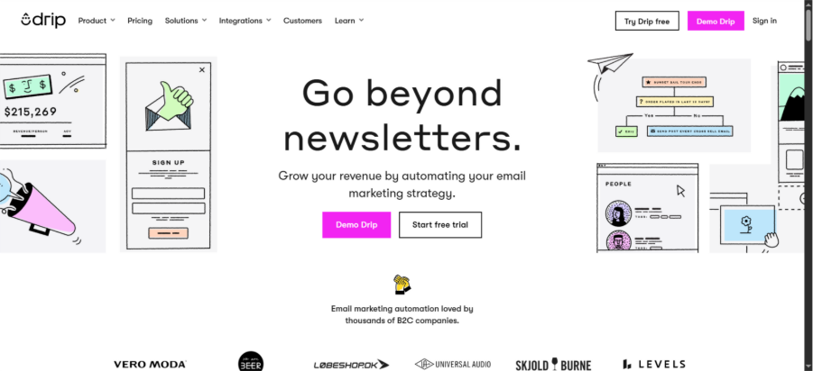 Drip automates campaigns with AI-powered workflows and personalised content based on subscriber behaviour.