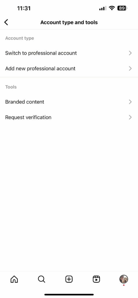 - Select ‘Switch to a professional account’ and choose ‘Creator’.