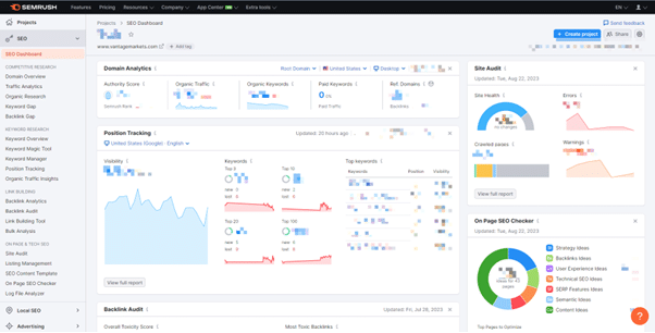 SEMRush ist ein umfassendes digitales Marketing-Tool, das Funktionen bietet, die darauf abzielen, die Online-Sichtbarkeit, die Keyword-Recherche, die Wettbewerbsanalyse und die Inhaltsoptimierung zu verbessern. Durch die Nutzung der robusten Keyword-Recherche-Fähigkeiten von SEMRush können Affiliates hoch frequentierte und relevante Keywords im Zusammenhang mit dem Devisenhandel identifizieren, sodass Sie Ihre Inhalte an die Suchabsicht der Benutzer anpassen können.