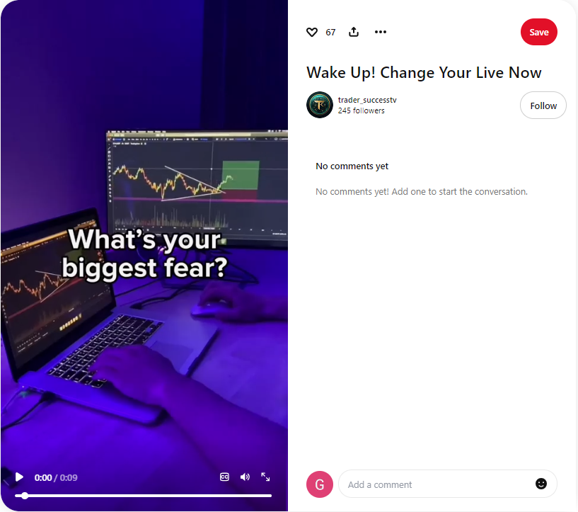 Cette vidéo d’une minute sur Pinterest utilise un format captivant pour vous guider dans les techniques de trading.