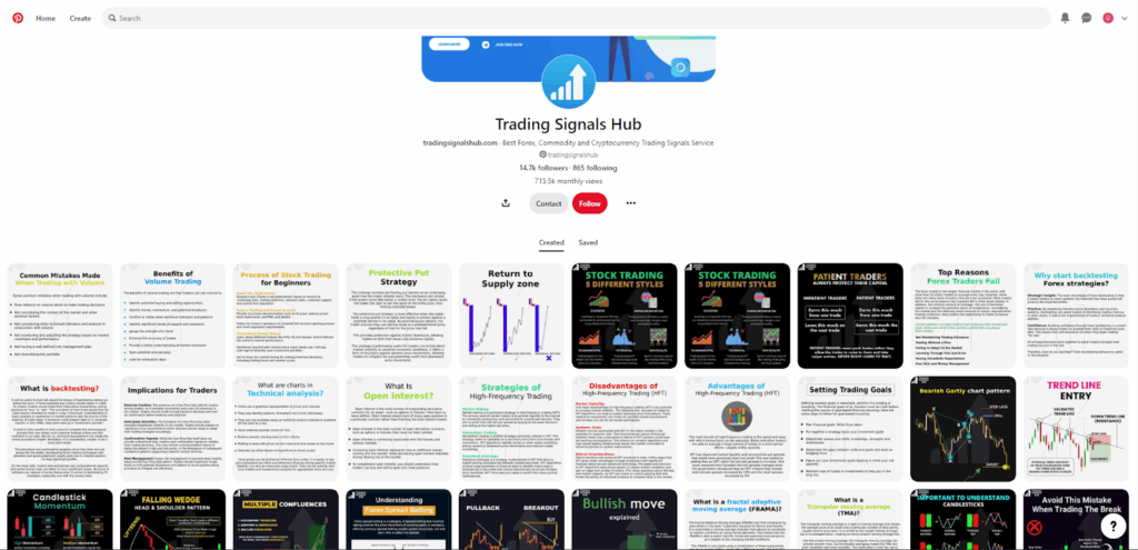• Rejoignez des tableaux de niche : participez à des tableaux en lien avec le trading forex ou les marchés financiers. Ces tableaux attirent déjà votre audience cible et la publication de contenu pertinent peut augmenter votre portée.